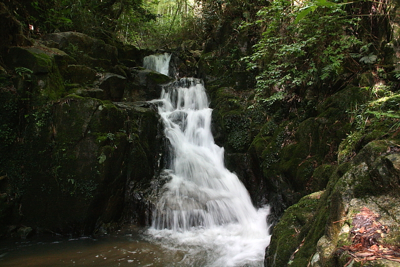 車谷の滝群 2015/06/06 京都府木津川市山城町綺田車谷 天神川 落差:F1:1m、F2:1.5m双瀑、F3:4m、F4:3m、F5:10m長滑滝、F6:7m、2段 滝の向き=西 「F5:10m長滑滝」から左岸をF5沿いに10分足らず進むと車谷最大の「F6:7m、2段」に着く。 この谷には落差のある滝が無いだけに10m以上の滝のように見えたが写っている滝上の橋欄干から推測しても10mには届かないと思われる。 全ての「車谷の滝群」を踏破して林道に這い上がったのが入渓後1時間半程過ぎた3時50分だった。 思ったほど時間が経っていないのは500m長程の渓流に滝が集中している為だ。 この渓流の見所は「F4:3m」。 最大滝「F6:7m」だけ見るのであれば「F4:3m」の上に懸かっている橋の少し上流側に沢に降り易い斜面があるのでそこから上流に10分足らずである。 今回も、お付き合い頂いた京の滝紀行の(峰さん)。ありがとうございました。 |