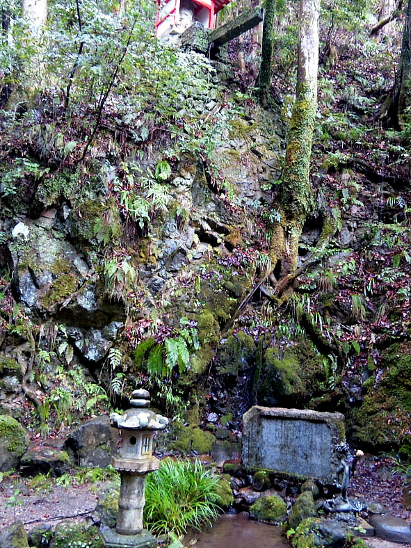 魔王の滝 2010/01/08 京都府京都市左京区鞍馬本町 落差:8m程の打たせ 当日、水の神「貴船神社」詣でに出かけた。 神仏信仰があるわけではないが新年の初詣、(水と滝)の関係ということにしておく。 又、鞍馬山の滝に興味もあったが概要がみえた時点で追わなかった。 鞍馬駅前を左折徒歩5分で鞍馬寺山門に着く。 「愛山費」200円を払い参道の坂を登り始めて間もなく「魔王の滝」なるおどろおどろしい名の滝が落ちていた。 この種(打たせ滝)は、人造滝が多く由緒を含め追求するつもりはない。 記録写真を撮るに留めた。 |