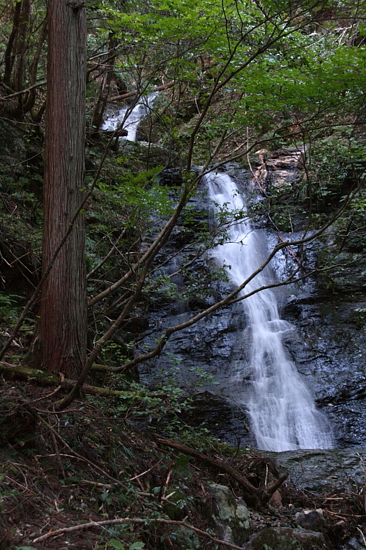 見後谷の滝 2011/09/11 京都市左京区久多上の町 久多川左岸見後(ミゴ)谷右岸脇谷 落差:6m+8m 滝の向き=南 滝前は倒木、間伐木など雑然としていて人が管理している気配はない。 集落の案内情報には滝谷の「一の滝」「馬尾の滝」以外の滝情報はなかった。 (避暑の滝徘徊)を大満足で終え、集落口の”久多の大杉”を眺め5時過ぎ帰路についた。 滝巡りは大汗をかくのは当たり前と認識している我輩は、市内に比べれば避暑できた・・と思うことにしよう。 京の滝紀行の(峰さん)遠路のご同行ありがとうございました。m(__)m |