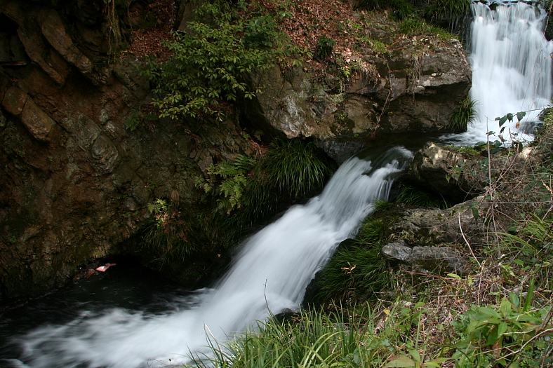 鳴滝(なるたき) 2009/03/01 京都市右京区鳴滝蓮池町 御室川 落差:4m 周山街道という京都市民が北部の行楽には必ず通る道路脇の御室川にかかる滝だ。 但し住宅の裏手になるため目にふれることはない。 道路脇に駐車場でもできお茶を飲みながら眺められたら絶好の息抜きになるだろうか? 行楽シ−ズンはこの周山街道は有名な渋滞箇所なだけに火に油を注ぐ結果は眼にみえている。 今の状態が幸運というべきだろう。 年中、滝の音をききながら暮らす住民は、余程滝好きの人でもないかぎりこれも問題だが滝は元々ここに存在したのだから後から住み着いた人間の都合だけを言えない。 とにかく滝は残っているのだから折り合いついているのだと思いたい。 |
