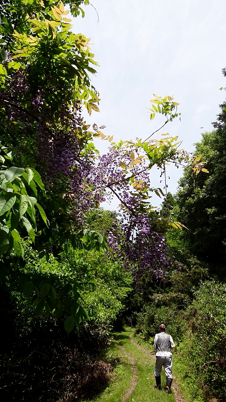 山藤の花が癒してくれる林道を進む。