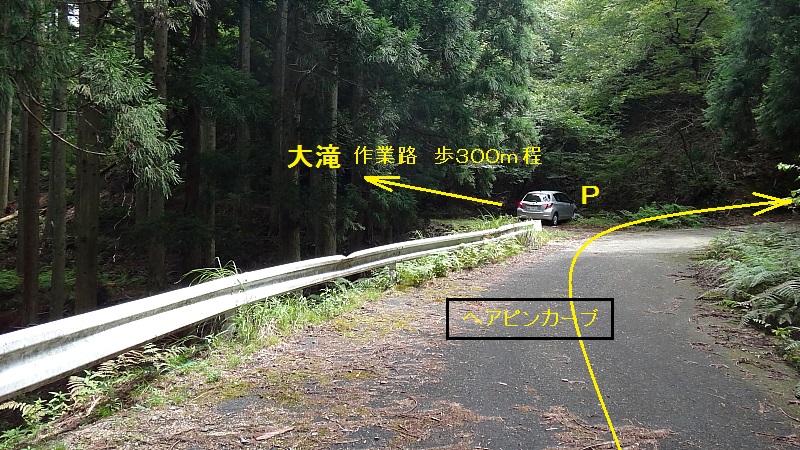 直ぐのヘアピンカーブの滝谷口に駐車し(11:50)土路作業道を歩き始める。