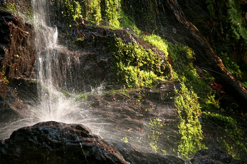 飛沫の周辺の青苔が飛沫とともに黒い岩に絶好の彩りを添えているのだ。