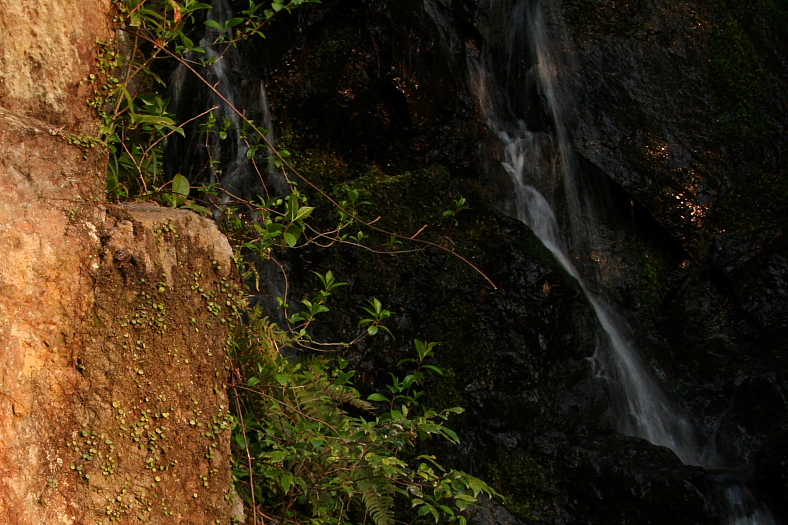 桜門の滝 2009/04/08 京都市左京区鹿ケ谷大黒谷町 落差:上段10mから更に下段に連なる 滝の向き=西 この時期、日没が6時を過ぎる。 ぼんやり滝を眺める背後に人の気配。 驚いて振り向くと長身の白人男。 この日山中で見た最初の人間だった。 近くの京大で数学を教えているという。 哲学の道は桜見客が多いので登ってきたという。 しばらくおしゃべりして 「本当の哲学の道はここですよ〜」と言うと大受け。 リベンジの満足感に浸りつつ西日の当たる滝から大急ぎで下山。 分伎路から待機中の「フェラーリ」を駆って一気に30分で帰宅。 東大路上りの往路大汗2時間ライディングが嘘のようだった。 明日はもう一つのリベンジアイテム「音羽川流域の滝」だ。 |
