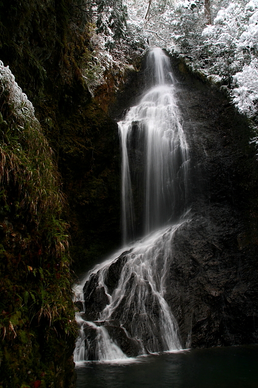 滝又の滝 2010/03/30 京都府京都市右京区京北細野町 轟谷 落差:25m 滝の向き=西 大森西町を経て「牛滝」に向かう山越えをすることにした。 「滝又の滝」10m程下流右岸を急登し上流に向かう登山道は、滝の上の落ち口の沢沿いから程なく林道に出会う。 左折北上約1km程の「余野」方向案内標示に従い東約1km程で「余野」集落に出た。 舗装道を400m程北上した「伏見坂」方向案内に従い林道を進むと北区「大森西町」の集落に出た。 ここから茶呑峠方向に2km程北上すると「牛滝谷林道」の分伎に出会う。 以後は「牛滝」レポに・・・ |