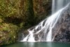 橋を渡り歩1.2kmの沢沿いの平坦遊歩路を何度か丸太橋渡渉しながら(20分程)進むと滝に着く。