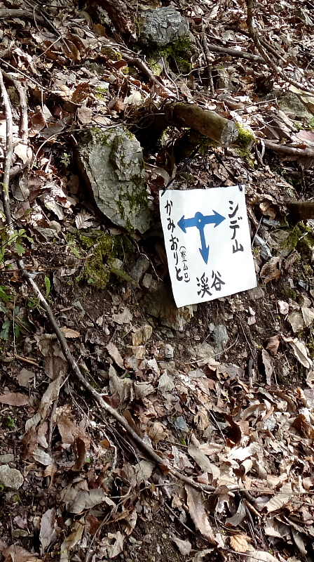 「6の滝」から尾根に登り返すと更にシデ山に登る尾根道に合流する。