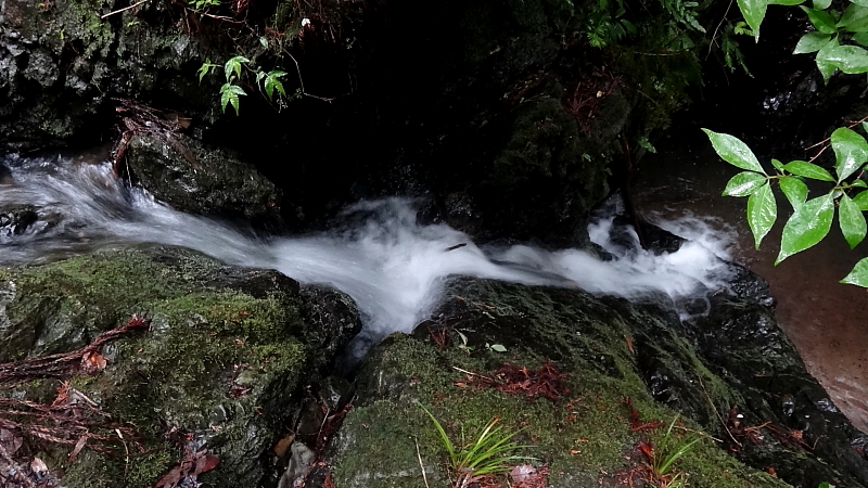 こんな小滝が帰還路の林道沿いに落ちていて、この谷では皮肉にも形状的に最も美滝だった。