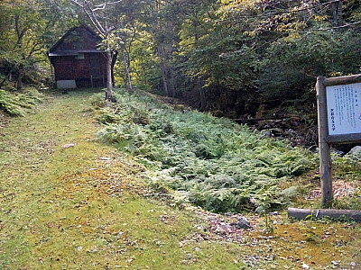 三国岳登山道の右側に久多川源流が流れているが「二の岩屋」の標示を過ぎたあたりから渓流は登山道から離れて行く。