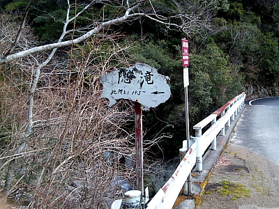 最初の布引谷の橋の袂に古びた「隠滝」の滝標示。