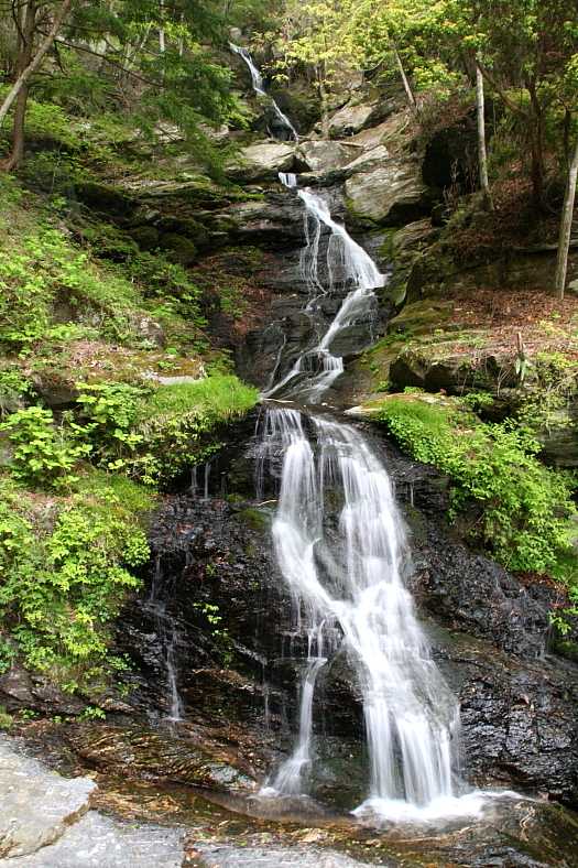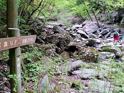 木梶不動滝 2009/05/03 三重県松阪市飯高町木梶 木梶川木原谷 落差:白滝:40m、木梶不動滝(林道上側)m、キワラの滝(林道下側)m、雲ヶ瀬本滝/木原第二滝m、鳴 滝m、不動滝40m、女滝:20m 滝の向き=白滝:南、木梶不動滝:南、キワラの滝:南 ![]() 再度、渡り返してきついジグザグ階段を150m程登り返すと木梶川遥か上の林道に出た。 登山口方向にゆる〜く下ってゆくとさっき見た「キワラの滝」が橋の下延々と落ち「木梶不動滝」が橋の上流に落ち不動が祀ってある休憩所に出た。 撮影中に「醤油樽の滝」オフ以来の”ジャンボさん”がひょっこり現れひとしきり会話がはずむ。 我々が明後日予定している「庵座の滝」にいってきたという。 |