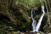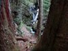 路側に駐車し歩500mほどで大きな杉の木の間からVの字に落ちる不動の滝が見えてくる。