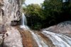 徒歩で鳥居橋を渡り右手緩い坂道を数分で本殿右手裏の滝に着く。