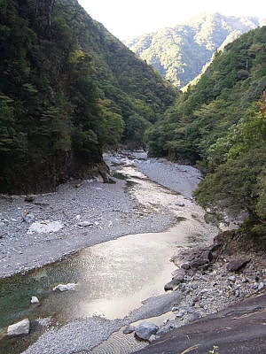 登山道に入って間もなくの”大日くら”といわれるあたりの渓谷の様子。