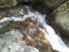 大きな岩の傍から急傾斜の踏み跡を3分位で滝下流に降りる。