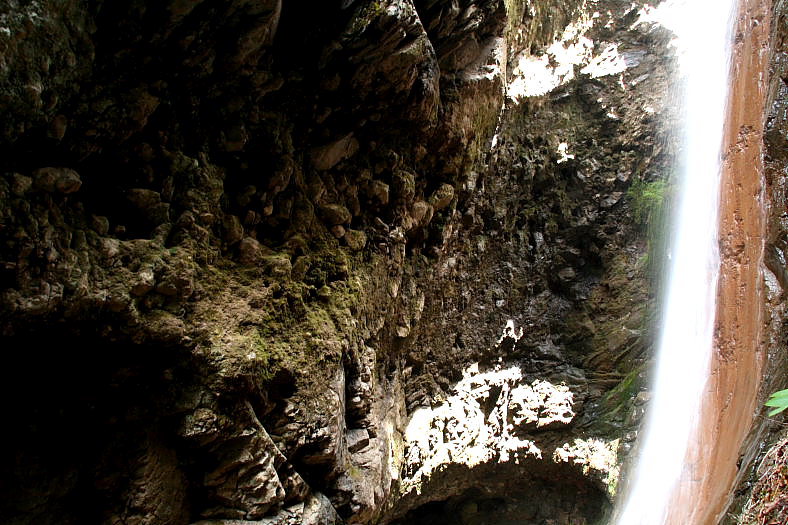 醤油樽の滝 2008/05/18 長野県茅野市豊平 鳴岩川上流 河原木場沢 落差:35m 滝の向き=西 来た道を引き返すぽかぽか陽気の渓谷は所々の残雪も急速度で溶けている。