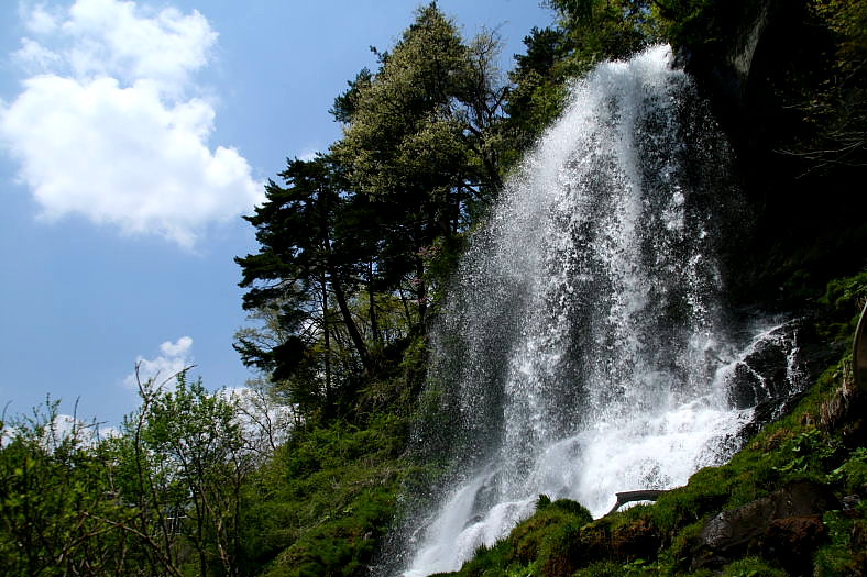 時間的には駐車場(標高1000m強)から5分「乙女の滝」>12分「霧降の滝」>15分「屏風岩」>25分「王滝」(標高1420m程)でした。