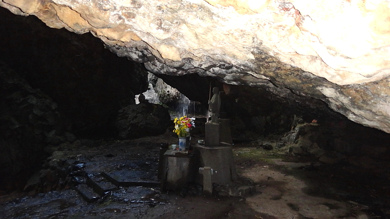 そして大師のむこうに・・は、とうとうと「落合(おてや)の滝」滝裾が見えている。