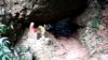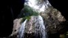 歩数分で岩の間を二度潜って行くと穴のような左の岩を潜って滝正面に出る。