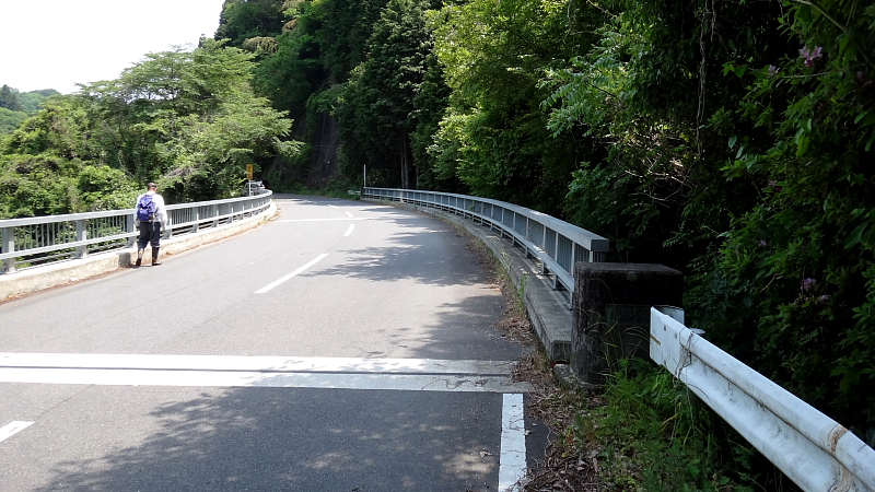 橋手前の右側の八丈嶽川左岸に入って行く。