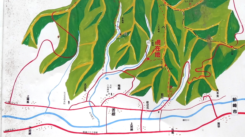 R252沿いの善根地区の侵入道路が解り難いので駐車場にあった周辺図を貼っておきます。