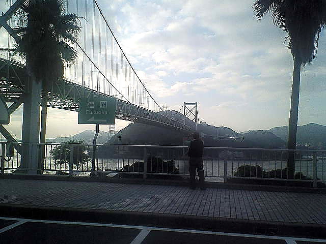 心なしか武者震いしながら壇ノ浦を睨む写録の旅人さんの後姿。男は後姿で語るんだな〜・・・。 この後、ひたすら九州東海岸を南下し別府市街山手の「乙原の滝」前に立ったのが9時半。 しかし後日のカメラ記録に「乙原の滝」が全く無いので携帯メモ画像で勘弁ください。 あの飛沫の中で撮った画像は何処に消えたのだ????不思議だ。 |