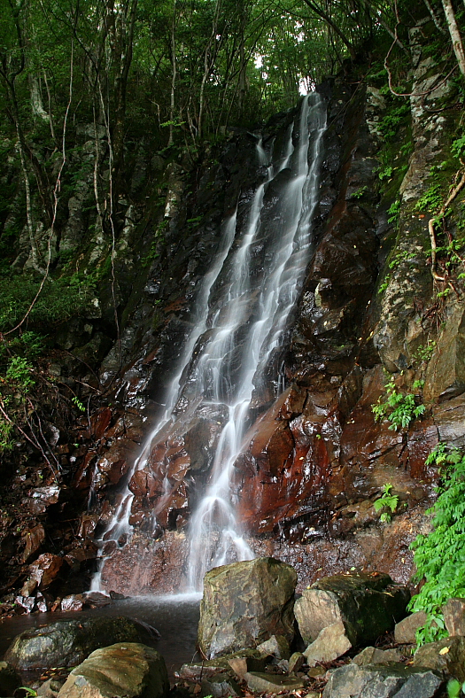滝壷というほど水量はないが嫌に大きな岩がごろごろしている。