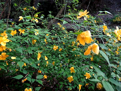 山吹が有名で”山吹渓谷”と呼ばれているとか・・。但し滝の上流はゴルフ場のようなので水を掬って飲んだりしないことだ。 |
