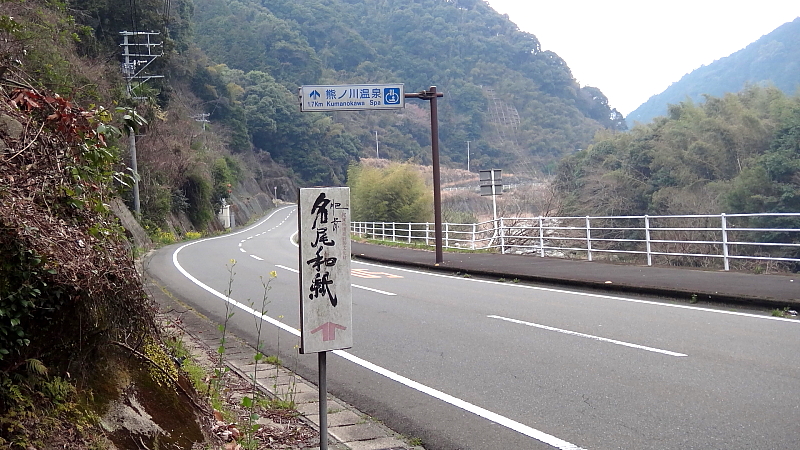 滝名標示柱が建っているのだがこちらの”熊ノ川温泉・表示”の場所を目安にする方が発見しやすい。