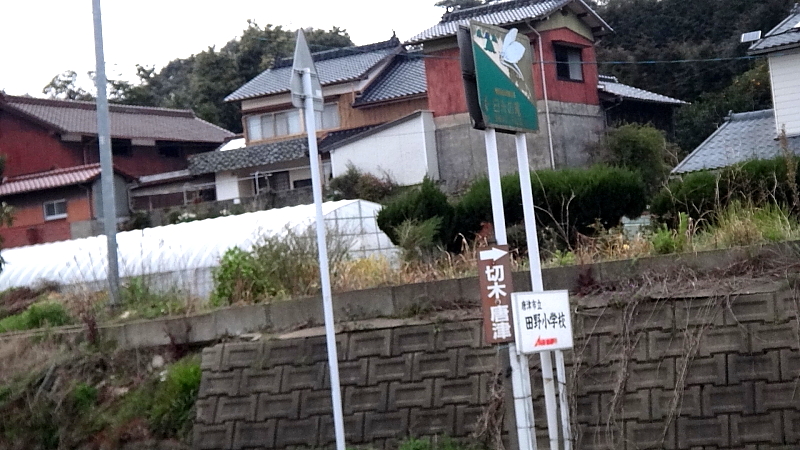 松浦から海岸沿いにR204を辿り「比恵田」バス停を注意すると古びた「白糸の滝」の案内板を発見できたが(田野小学校?)の標示の方が解りやすい。