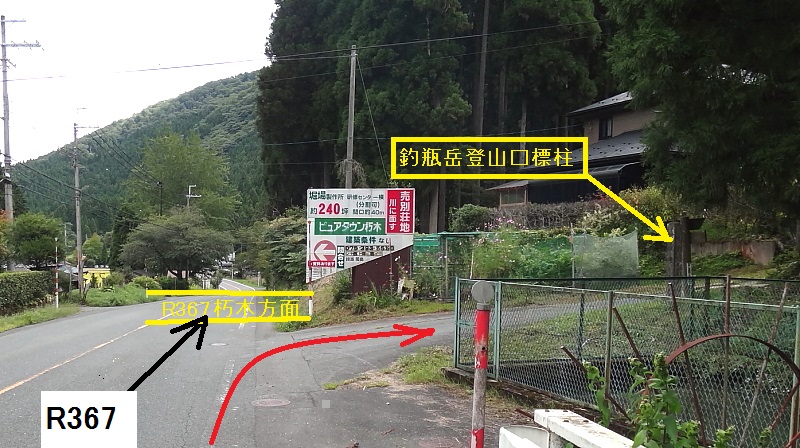 登山口の標柱は、国道R367から見過ごしやすいので注意。