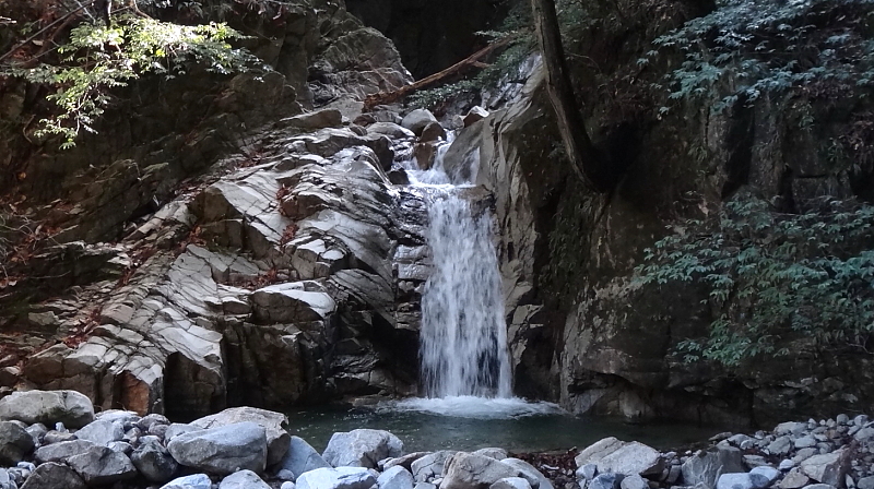 意外に大きい滝壺と清流。