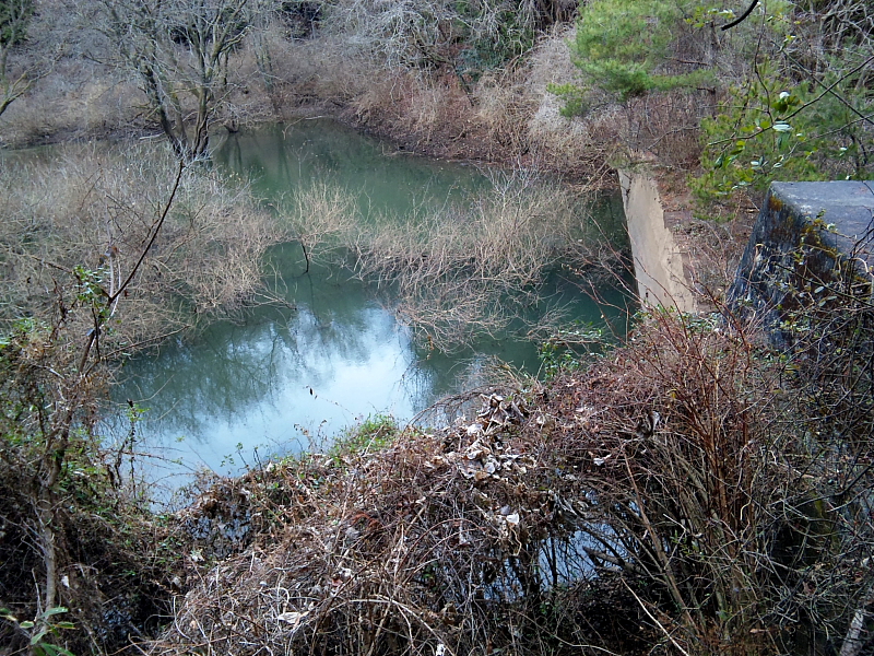 「白蛇の滝」の上流はこの堰堤池だった。 上流に人家がないにもかかわらず下流の滝群の水の透明度がない原因はこの堰堤池と思われる。