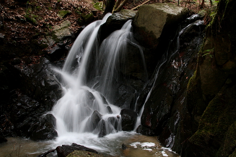 北向きの滝であるが下滝(門滝)あたりは逆光の影響は無視できる。