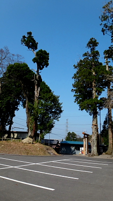 鳥居の右手に大きな駐車場とタコ杉(幹周/7.2m、樹高/20m、樹齢/推定400年。)なる立派な杉の木に癒される。