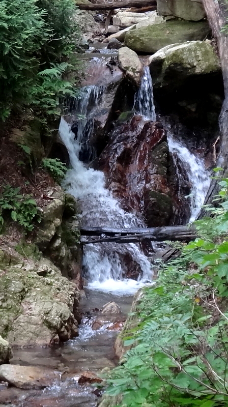 この滝の前を左岸から右岸に渡りワサビ谷から離れて広谷方面への傾斜のある登り道となる。