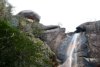 案内図に従い「落ケ滝」分伎を右折渡渉して直ぐに大きな岩を登る遊歩道となる。