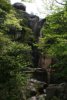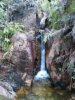 「落ケ滝」分伎を右折渡渉する沢を上流に少し辿ると「お松の滝」が樋状3段滝となって落ちている。