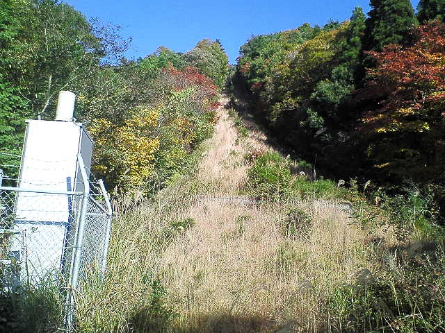 神爾(しんじ)の滝 2008/11/13 滋賀県大津市比良山神爾谷 落差:雄滝17m、雌滝12m 9:07 旧リフト・ロープウェー駅>カマブロの滝>を見て旧リフト・ロープウェーが設置されていた急傾斜面の交差地点に到着。 わずか5年前まではスキー客が歓声を上げながらリフト・ロープウェーで山頂と行き来していたのだ。 (・・強兵共が夢の跡)である。