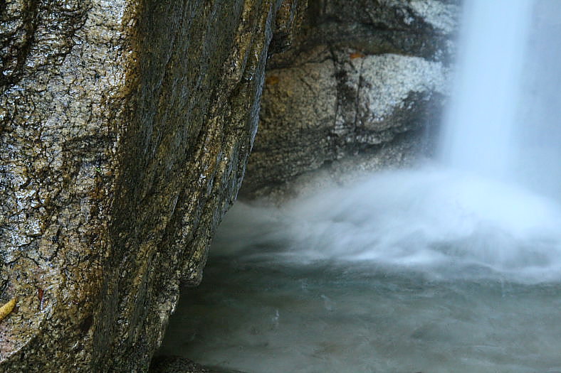 「雌滝」は「分技滝」程には暗くないがスローシャッターでも高速シャッターでも変わりないくらい滝水が飛沫をあげずに滑り落ちる。
