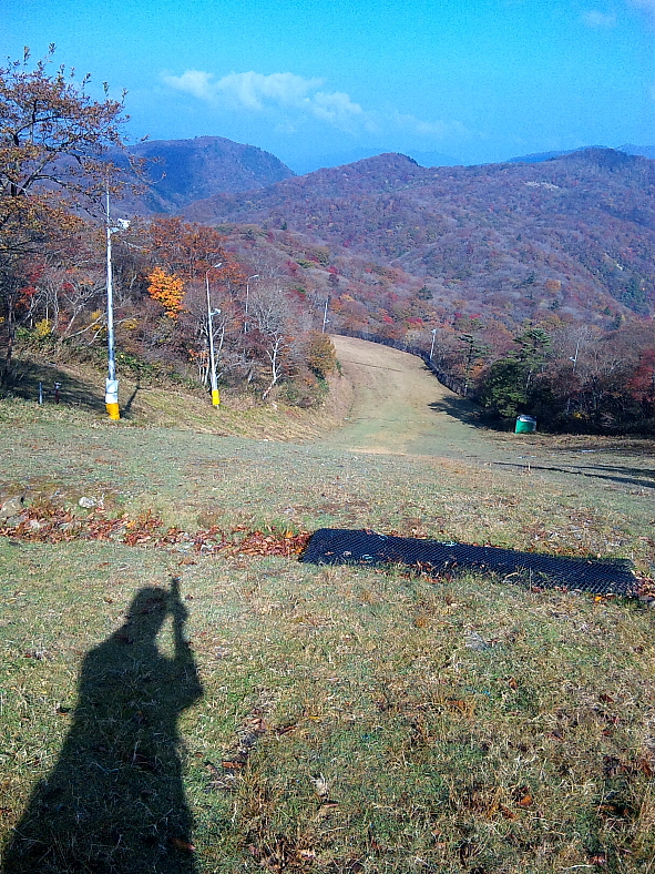 天気予報は全国的晴天を伝えていた。こんな日に家にくすぶっているのは勿体無い。 当日の夜半に急遽準備をして8時過ぎ志賀駅に降り立った。 バスは9時過ぎの時間のため1時間程駅前の駄菓子店のおかみと雑談しながら情報収集。 バスの運ちゃんが入ってきて 「小女郎峠あたりで遭難があったみたい」 という。 琵琶湖バレー山麓駅に着くと山岳救助隊員が準備体勢に入っていた。 始発9時半の大きなロープウェイリフトに乗ると救助隊員も乗ってきた。 リフトから見える山の紅葉は最盛近い。 単独ではじめての白滝谷徘徊なので注意しなくっちゃ〜 山頂から150m標高差の木戸峠までの30度以上はあるゲレンデを転げそうになりながら出発。 |