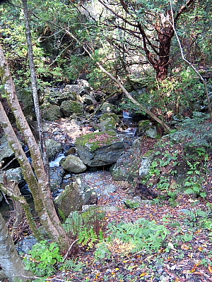 遊歩道も登山道もないいきなりV字の岩の渓流だけの谷。