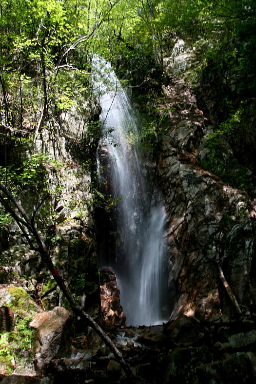 隠れ滝 2011/05/15 大津市北比良 正面谷右俣ウエ谷 落差:18m 2011/01/28 ひょんな機会に”稲荷山”でお会いした「京の滝紀行」主筆者の京の滝紀行の(峰さん)。 2日前に再度”稲荷山”で再会した機会に滝巡りの約束ができたのだった。 京都の滝はほぼ一巡の京の滝紀行の(峰さん)、当初滋賀県の「神爾の滝」を御提案したのだが既訪とのことなので急遽、隣の正面谷の「隠れ滝」に変更。 京都市内で落ち合い北比良”イン谷口”奥のキャンプ場駐車場到着が9時30分。