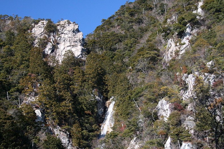 「滝見台」と言われる東屋の設置してある場所から「雌滝」に下って行く石段の途中にこの場所はある。