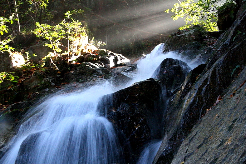 落差:下の滝:3m、斧研の滝:8m、上の滝:13m、上流滑滝