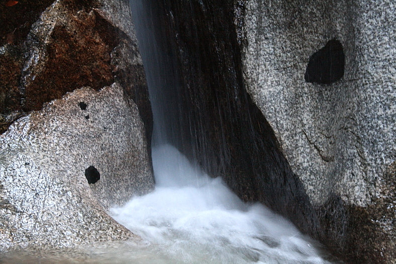 落差:下の滝:3m、斧研の滝:8m、上の滝:13m、上流滑滝