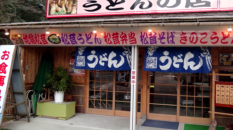 30km近く走った長門峡の道の駅に寄って高い値段のメニューに嫌気してR9沿いの食事箇所を物色し、やっと眼に入った”うどんの店”で昼食の”肉うどん \550-”pm1:30~50。