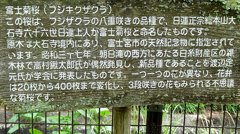 その桜について貴重な情報板が滝の遊歩道に建っていた。