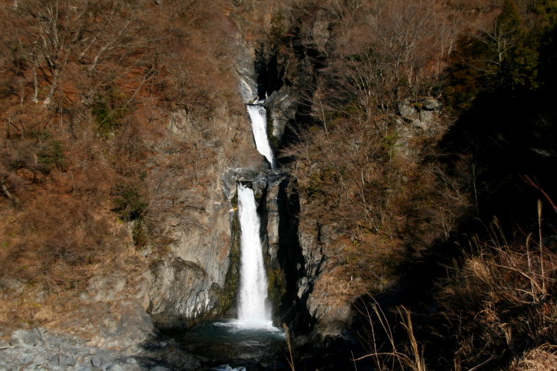 安倍川本流に落ちるだけに冬季でも水量豊富で堂々とした滝。