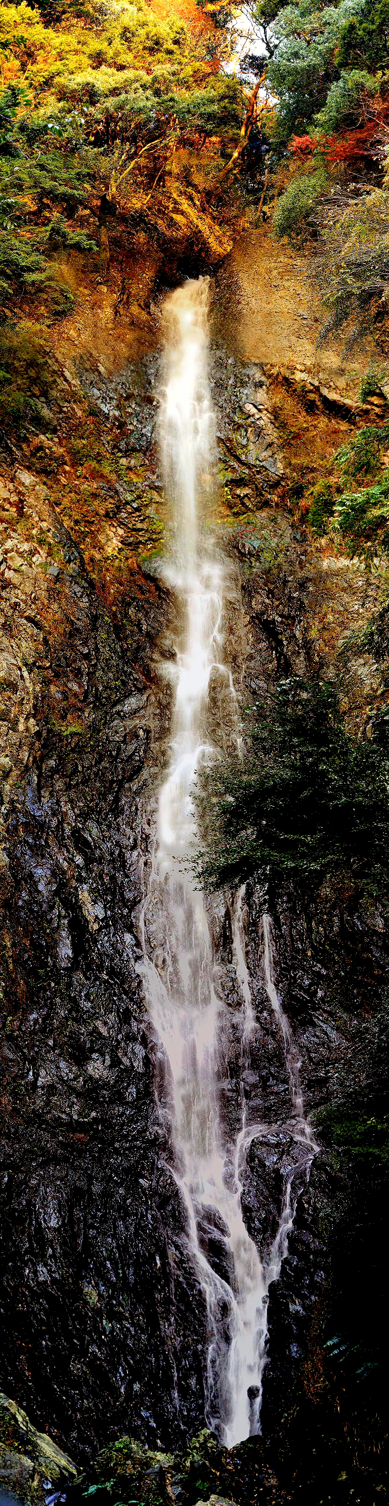 弧を描く虹でなく滝身の縦に色が付く虹というべきか?